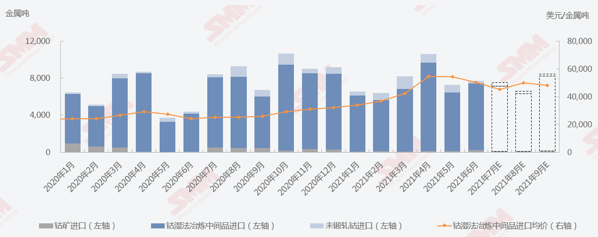 钴原料:6月钴原料进口微增,南非暴乱影响8月进口量预计减少