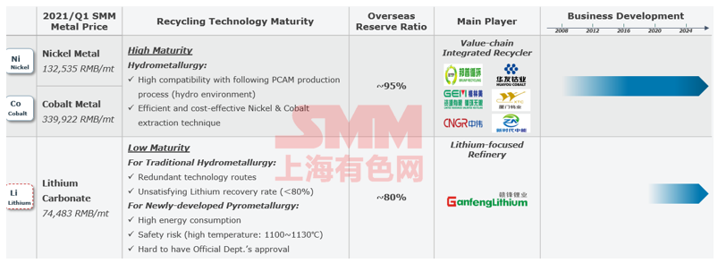 与镍和钴相比,相对较低的金属价格和较高的加工成本使得锂回收业务的吸引力降低