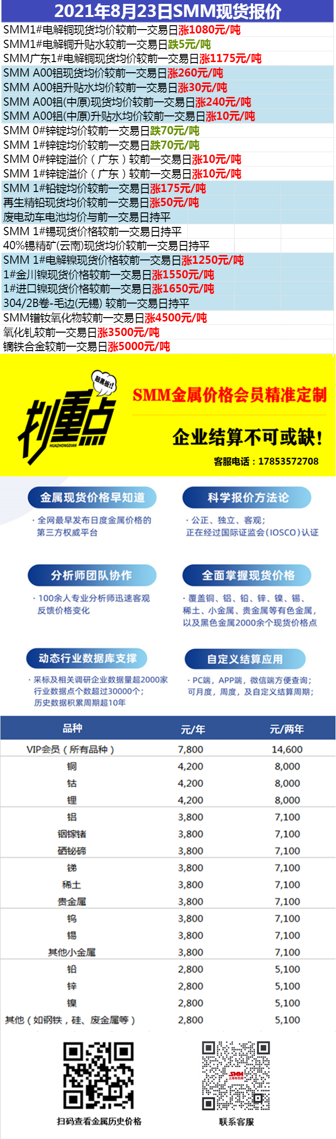 》SMM小金属现货价格全览