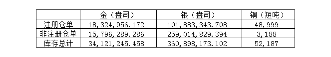 2021年9月16日COMEX金属库存