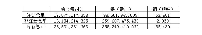 2021年10月14日COMEX金属库存