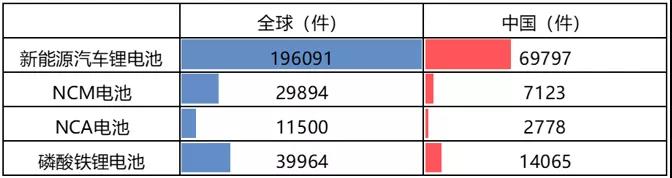 图4 全球和中国新能源汽车锂电池及各细分类别专利申请量