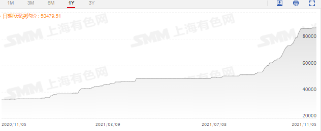 据SMM现货报价显示,截止11月5日,动力型磷酸铁锂现货均价88500元/吨,较年初涨50500元/吨,涨幅达132.89%。