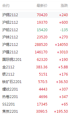 截止日间收盘,金属期货市场情况: