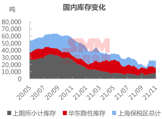 11月11日,SMM统计国内电解铝社会库存100.7万吨,周度去库0.6万吨。地区间增减不一,其中,南海、上海及巩义地区贡献主要降幅,同时无锡地区延续累库状态。去库拐点初现,力度及可持续性需持续关注到货量及下游限电放松后刚需反弹的程度,同时北方暴雪天气对运输的影响程度仍待观察。