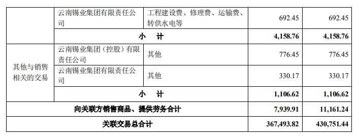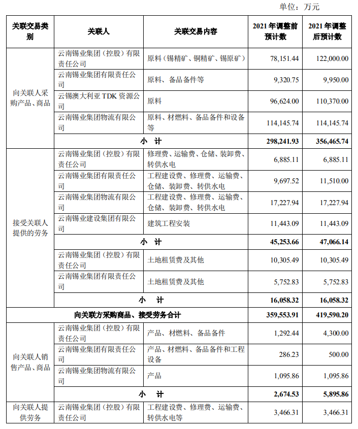 今年以来,由于锡、铜相关金属价格持续上涨,其原料价格相应上涨;同时,相关备品备件及材燃料等价格不同程度上涨,导致公司与部分关联方发生的日常关联交易结算金额上升。