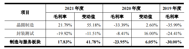 晶圆制造业务扭亏为盈,封测业务毛利率持续为负