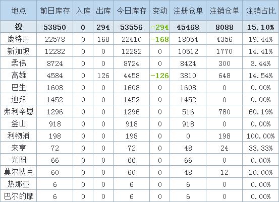 LME镍库存减少294吨 来自鹿特丹和高雄仓库
