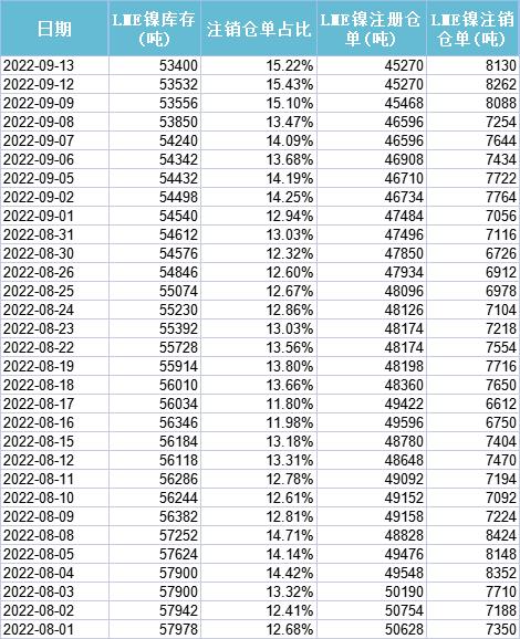 LME公布的数据显示,LME镍注销仓单最近呈现攀升状态,目前升至8130吨,注销占比为15.22%。注册仓单仍然维持去化姿态,目前落至45270吨。