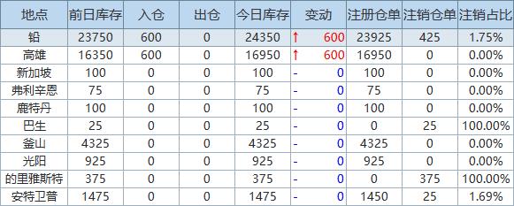 12月9日LME铅库存增加600吨,因高雄库存增加,其余地区库存数据暂无波动。