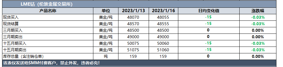 SMM网讯:2023年1月17日LME钴期货官方报价: