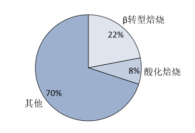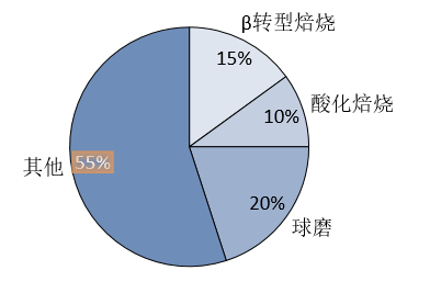 (1)β转型焙烧:转型焙烧温度较高,需要的热量较大,因此通常利用天然气进行加热,天然气能耗占比22%