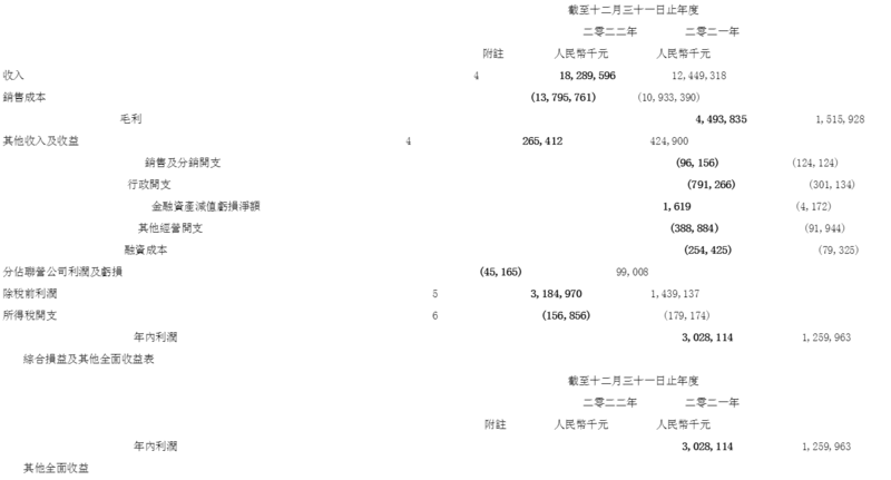 据力勤资源公告显示,截至2022年12月31日止年度,公司收入人民币182.9亿元,同比增幅为46.9%。公司拥有人应占利润为人民币17.35亿元,同比增加57.8%。母公司普通权益持有人应占每股盈利1.30元人民币。