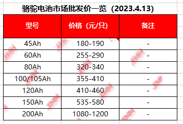 骆驼电池市场批发价一览(2023.4.13)