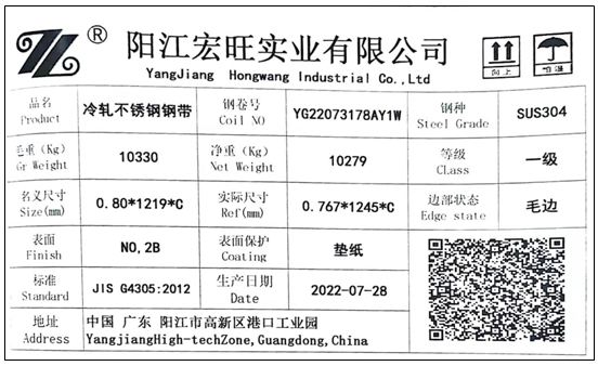一、同意宏旺控股集团有限公司“宏旺(图形商标)”牌不锈钢增加广东阳江产地。