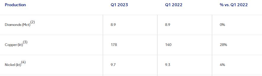 与此同时,英美资源集团第一季度的镍产量增加4%,反映出经营业绩的改善。2023年镍产量指导为3.8-4万吨。