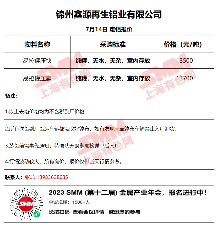 今日锦州鑫源再生铝业有限公司 废铝采购报价已更新,有货的朋友欢迎联系我们!