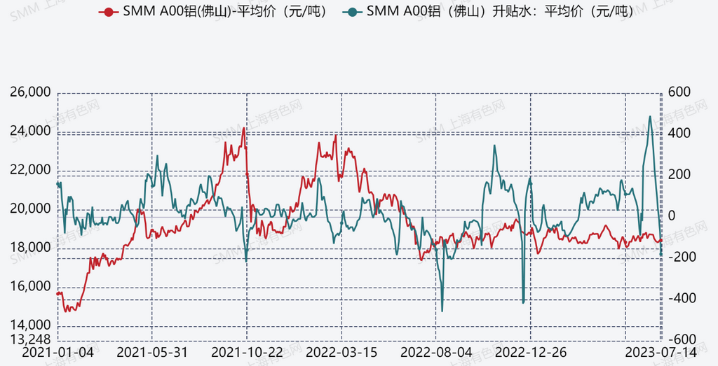 沪铝夜盘继续上涨,今日开盘后震荡上行,主力合约涨幅0.74%,铝锭连续累库,本周出库好于上周,临近周末,贸易商依然低价甩货,以规避交割日风险,下游逢低采购,现货成交-30-40至-60-70,月差走扩,现货对8月升水继续收窄,临近交割对当月合约贴水大幅扩大,今日粤沪价差-90,扩大80;对中原价差20元,整体成交一般。今日SMM佛山铝价对2307合约报贴水180元/吨,较昨日扩大110元/吨,现货均价录得18420元/吨,跌10元/吨。第二交易时段,沪铝高位波动上行,持货商调价有限,接货方逢低少量补入。整体成交价对SMM华南铝价贴水80元/吨-升水10元/吨,成交价格集中在18340-18430元/吨。