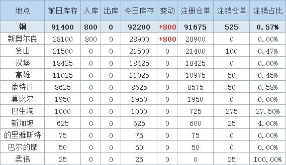 外电8月18日消息,以下为8月18日LME铜库存在全球主要仓库的分布变动情况:8月18日LME铜库存增加800吨,其中,新奥尔良铜库存增加800吨。8月18日累计增加铜库存800吨。8月18日LME铜仓库最新库存数据为92200吨。