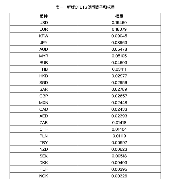 一、调整CFETS人民币汇率指数的货币篮子权重