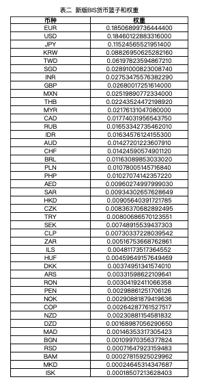 二、调整BIS货币篮子人民币汇率指数的货币篮子和权重