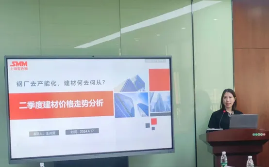 上海有色网建材高级分析师王诗斐进行“二季度建材价格走势分析”主题演讲