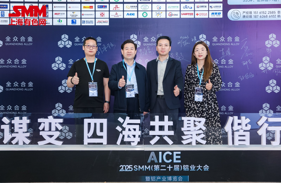 4月16-18日,由上海有色网信息科技股份有限公司(SMM)主办,中亿丰金益科技(苏州)科技有限公司、乐至县乾润招商服务有限公司协办,上栗县科源冶金材料有限公司、广东齐力澳美高新材料股份有限公司、大正金屬(控股)有限公司、金桥轻合金科技(江门)有限公司等单位为论坛冠名,索通发展股份有限公司、上海嘉朗实业有限公司为论坛协办,以及各特邀支持单位、大会支持单位、大会呜谢单位和各媒体单位支持的AICE 2025 SMM(第二十届)铝业大会暨铝产业博览会在江苏·苏州国际博览中心 E3-F3馆隆重召开!