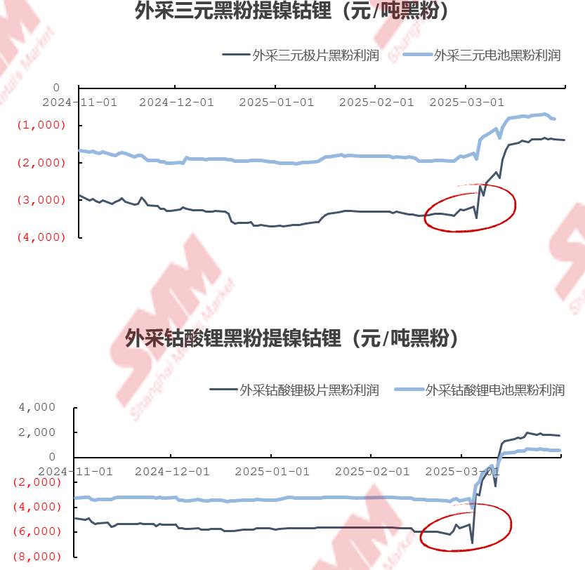 动力电池回收产业链下游-湿法端外采黑粉利润成本情况