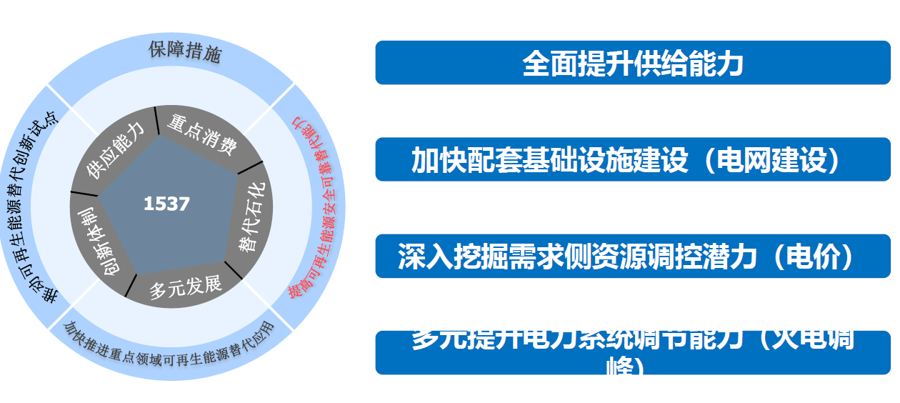 2024年10月30日,国家发改委等部门印发《关于大力实施可再生能源替代行动的指导意见》([2024]“1537号”)提出,“十五五”各领域优先利用可再生能源的生产生活方式基本形成,2030年全国可再生能源消费量达到15亿吨标煤以上,有力支撑实现2030年碳达峰目标。