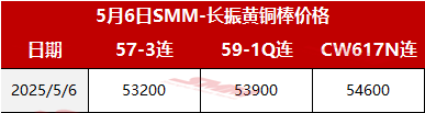 【SMM价格】2025年5月6日长振黄铜棒价格