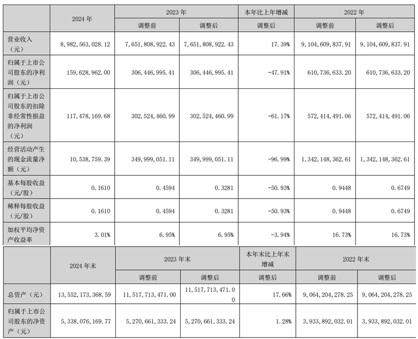 宝武镁业回应:2024年公司实现营业收入8,982,563,028.12元,与去年同期相比上升17.39%,归属于上市公司股东的净利润159,628,962.00元,与去年同期相比下降47.91%。主要受镁价下行影响,镁材料及压铸产品毛利率下降,公司业绩同比下降。
