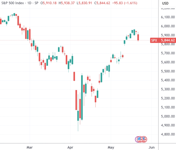 截至收盘,标准普尔500指数跌1.61%,报5844.61点;纳斯达克综合指数跌1.41%,报18872.64点;道琼斯工业平均指数跌1.91%,报41860.44点。三大指数均创一个月来的最大跌幅。