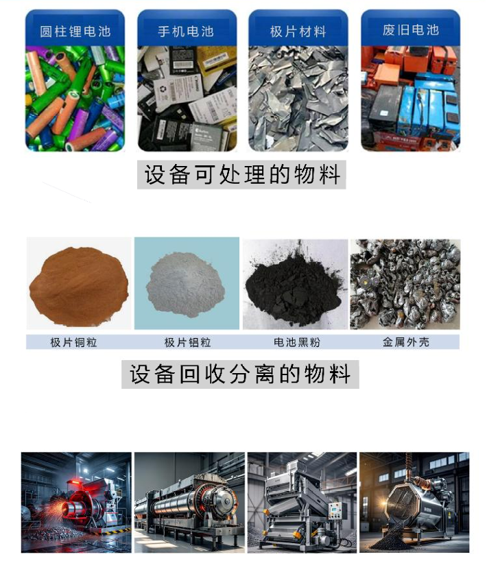 废锂电池极片回收处理设备是针对锂电池回收过程中的关键环节——正负极片材料分离与回收而设计的专业化设备。随着新能源汽车和储能行业的快速发展,锂电池报废量激增,高效环保的极片回收技术成为资源循环利用的核心。
