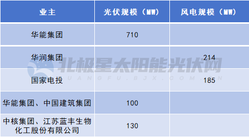 截至目前,已有1.339GW风光指标完成竞配。从业主来看,其中华能集团所获规模最大,共710MW,华润集团为214MW;此外,国家电投、中国建筑集团、中核集团、江苏蓝丰生物化工股份有限公司均有所获。