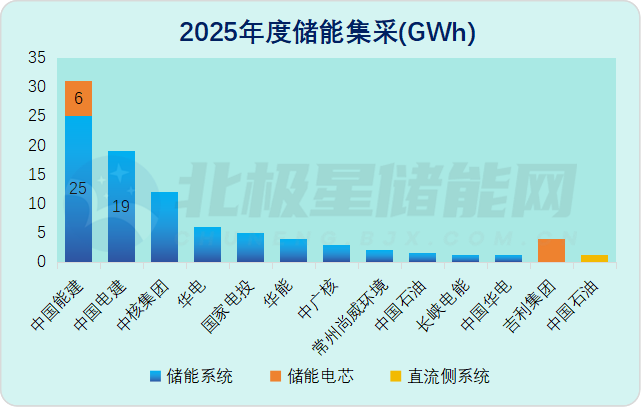 据北极星储能网统计,这是2025年度以来最大一笔储能系统集采,超过了中国电建单笔16GWh的采购规模。而且,中国能建储能设备集采总规模已经超过31GWh,在今年央国企91.5GWh储能招采总量排名遥遥领先,占比高达27.3%。