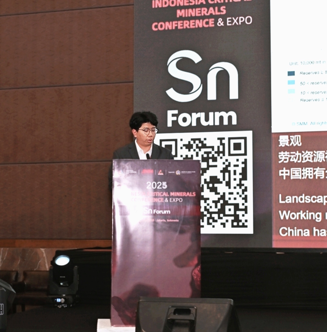 在由上海有色网信息科技股份有限公司(SMM)主办、印尼外交部作为政府支持单位支持、印度尼西亚镍矿商协会(APNI ) 、 雅加达期货交易所(Jakarta Futures Exchange)和中国煤炭资源网协办的2025印尼矿业大会暨关键金属会议——2025 东南亚锡产业大会上,SMM锡高级分析师陈朋对全球锡产业链的格局变化及未来发展趋势这一主题展开了论述。