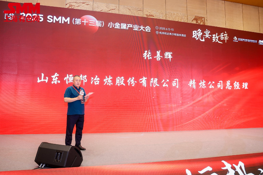 6月12-6月13日,由山东恒邦治炼股份有限公司、上海有色网信息科技股份有限公司(SMM)主办的2025 SMM(第十三届)小金属产业大会在浙江·杭州和达希尔顿逸林酒店隆重召开。