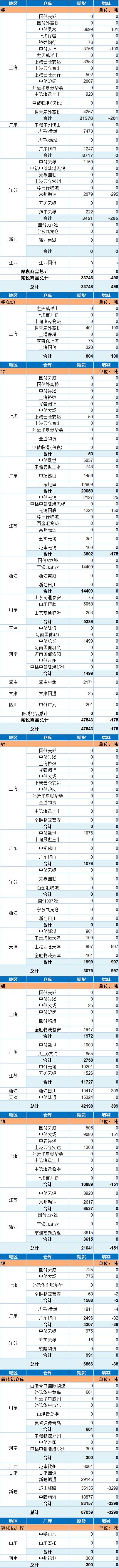 6月10日上海期货交易所金属库存日报