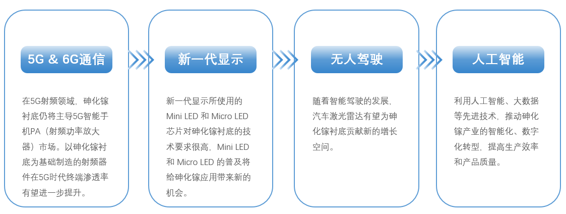 随着5G通信技术和人工智能技术的发展,同时受益于物联网传感技术的广泛应用,根据Yole预测,激光器是砷化镓衬底未来五年最大的应用增长点之一。