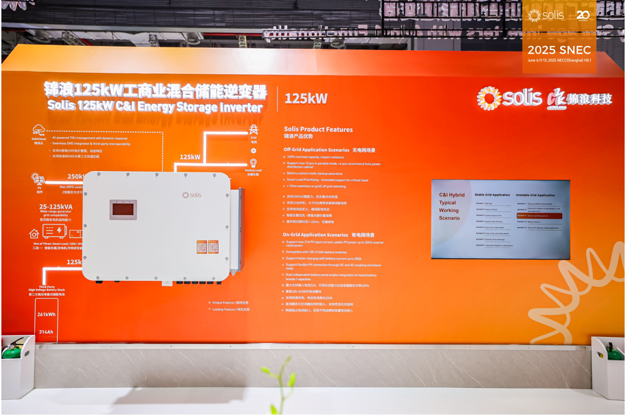 2025年6月11日,锦浪Solis隆重亮相第十八届(2025)国际太阳能光伏与智慧能源(上海)大会暨展览会,此次展会不仅展示了覆盖户用到工商业的全场景光储解决方案,还重磅发布了创新的四合一工商业混合储能逆变器及全新升级的SolisCloud智慧能源管理平台。通过软硬件协同创新,充分展现了在AI智能化和功能集成化等领域的技术领先优势。
