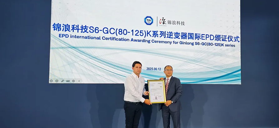 展会期间,锦浪产品一举斩获多项荣誉,TÜV南德意志集团为锦浪Solis的S6-GC(80-125)K系列逆变器产品颁发国际EPD环境产品声明。该声明的获得充分展现了锦浪Solis在可持续方面的积极布局,同时也是锦浪Solis推动产品可持续设计的具体实践。