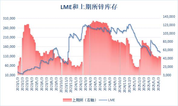 以下为2025年6月以来LME和上期所锌库存数据:(单位:吨)