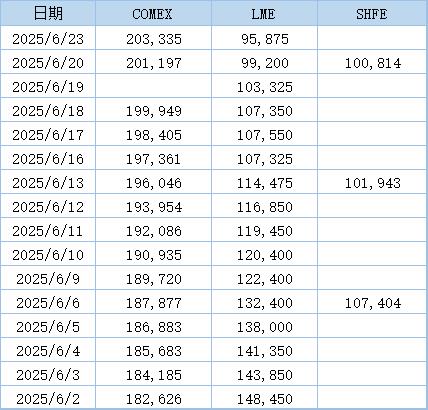 上海期货交易所最新公布数据显示,6月20日当周,沪铜库存小幅回落,周度库存减少1.11%至100,814吨。国际铜库存增加1336吨至12,709吨。