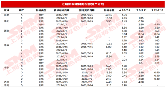 图 3 近期影响建材的轧线检修及复产计划