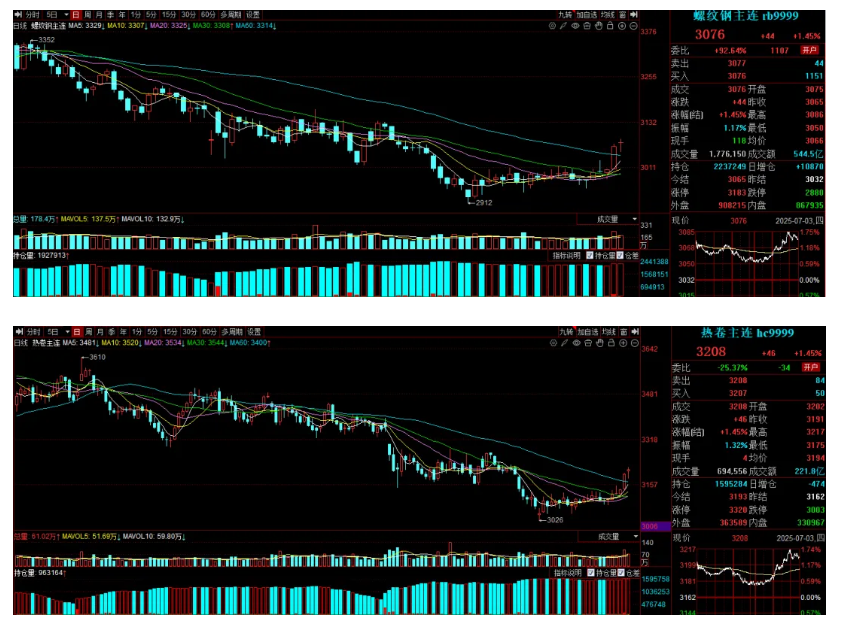“这两天黑色板块的上涨与7月1日市场的两则消息有关,一是唐山地区钢厂的限产,二是治理内卷。”华宝期货黑色分析师赵毅说。