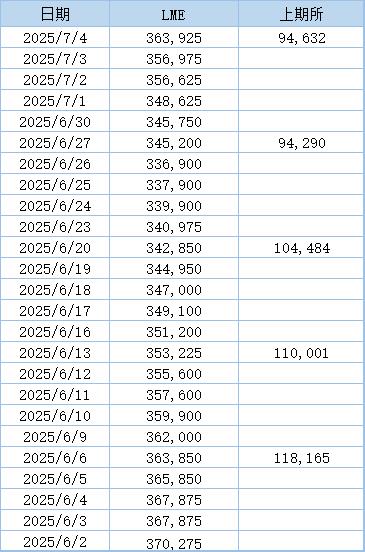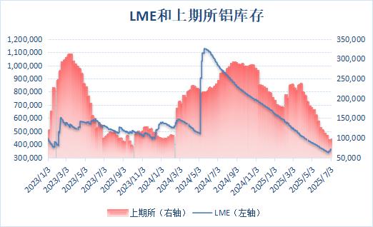 以下为2025年6月以来LME和上期所铝库存数据:(单位:吨)