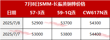 【SMM价格】2025年7月8日长振黄铜棒价格