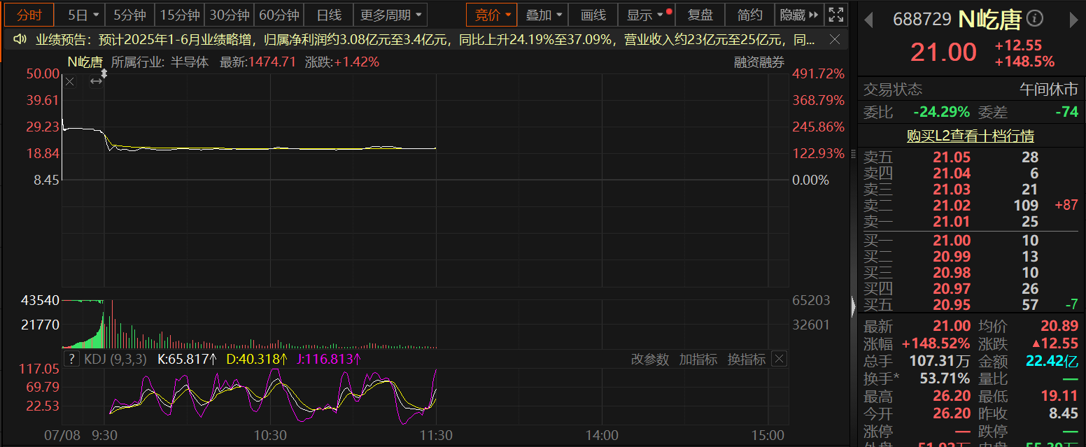 SMM 7月8日讯:今日半导体板块开盘持续拉涨,其指数盘中一度涨逾1%,个股方面,半导体设备领域细分龙头屹唐股份今日在科创板上市,发行价格为8.45元/股,股票开盘后,盘中最高一度拉涨305.33%,最高一度冲至26.2元/股,随后其涨幅略有回落,截至10:40分,屹唐股份涨幅维持在145%左右。