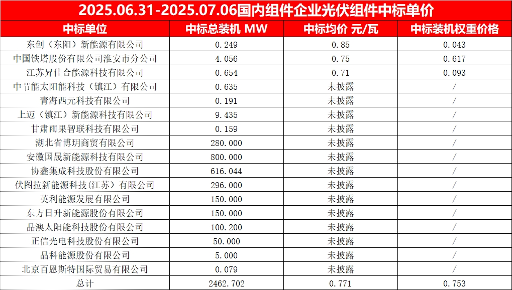 2025年6月31日至2025年7月6日, 当周SMM统计国内中标,