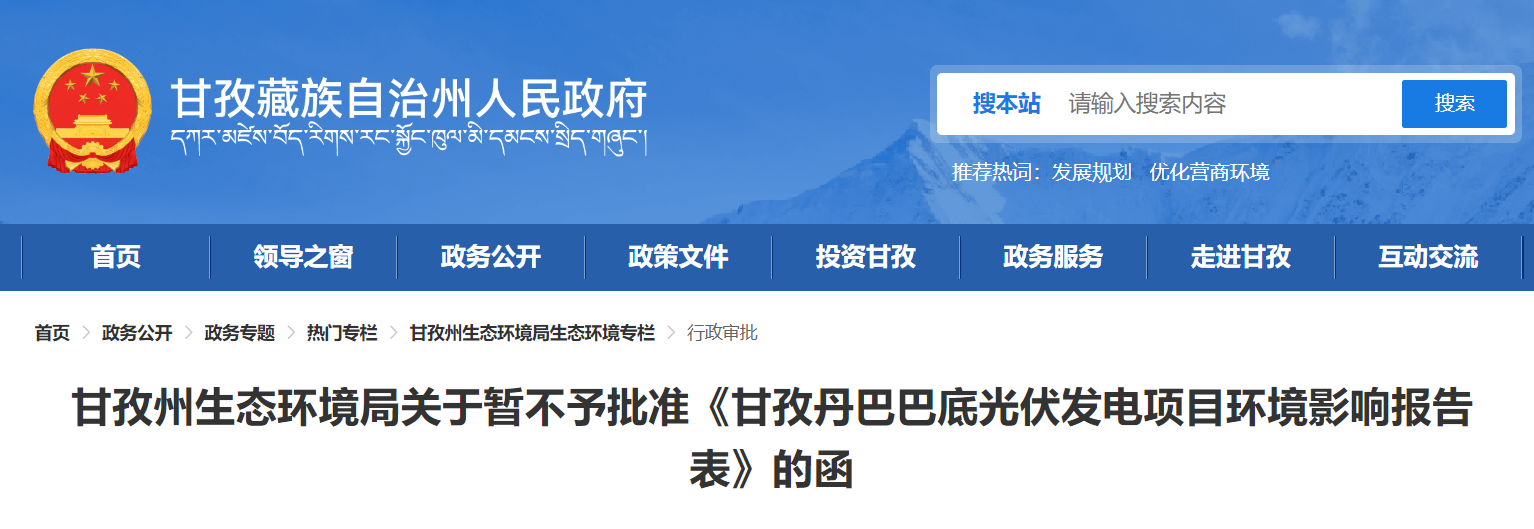 7月3日,甘孜州生态环境局发布关于暂不予批准《甘孜丹巴巴底光伏发电项目环境影响报告表》、《甘孜雅江柯拉二期光伏发电项目环境影响报告表》的函。